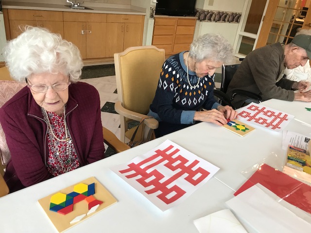Residents learned about the Chinese New Year with Trivia facts, crafting a “Double Happiness” symbol to hang on the door, and doing Tangram puzzles for fun.