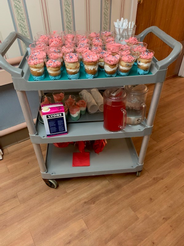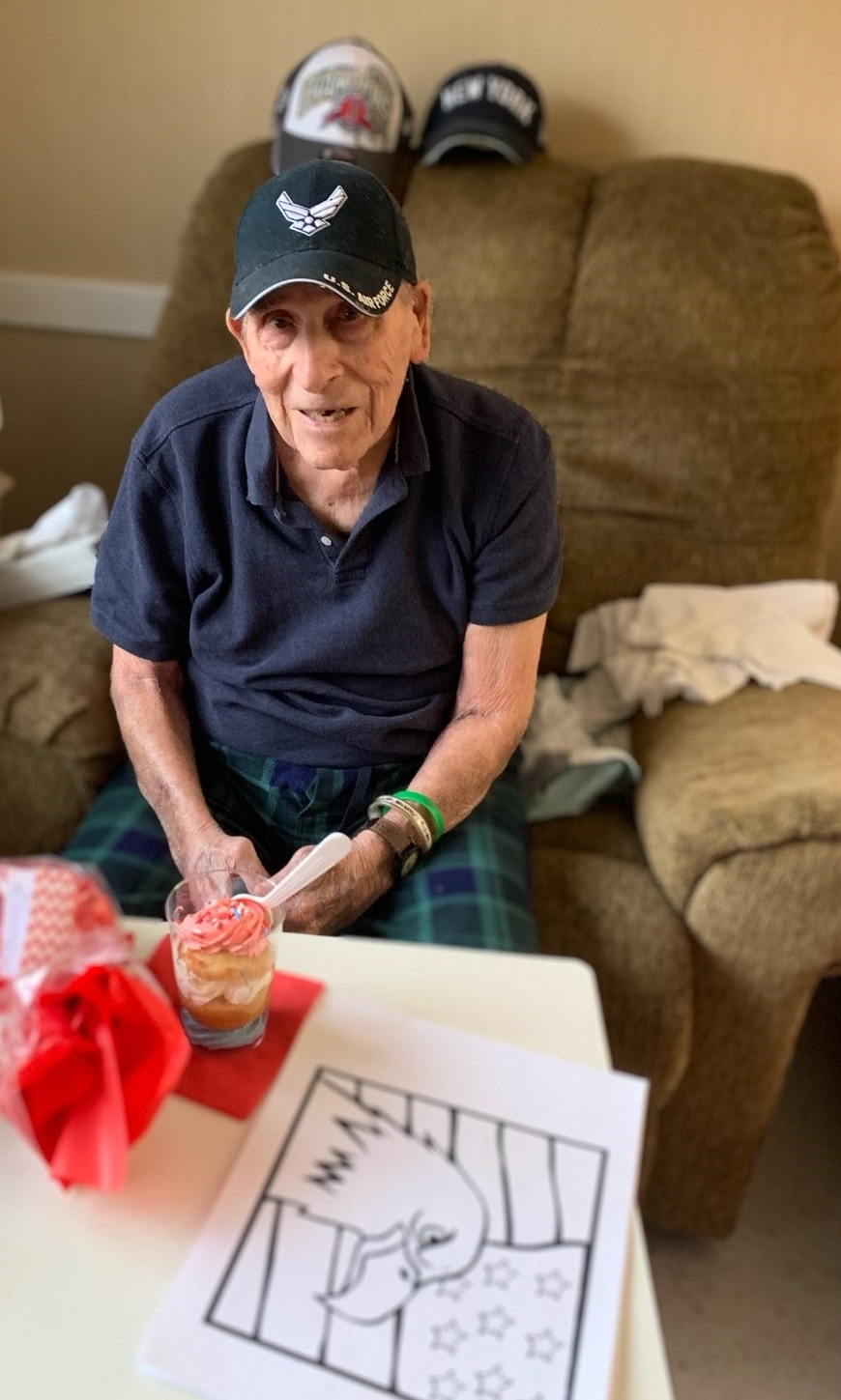 Our 3 Veterans were honored with a special Red, White & Blue cake parfait, patriotic music & each was gifted a pair of Stars & Stripes Socks.