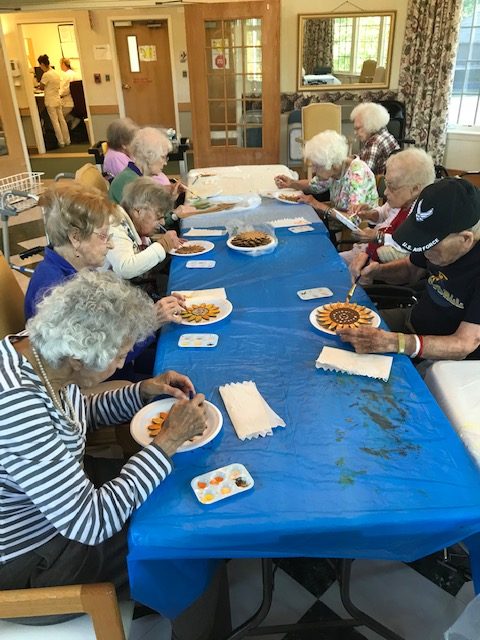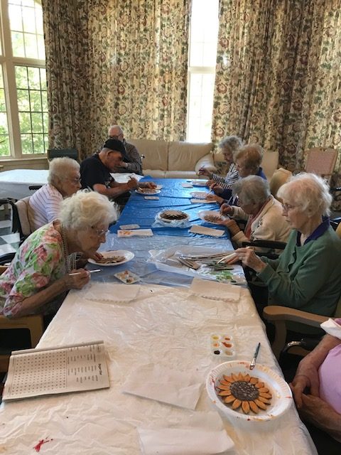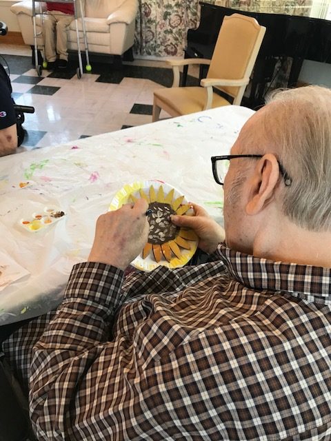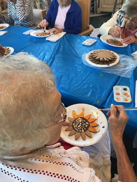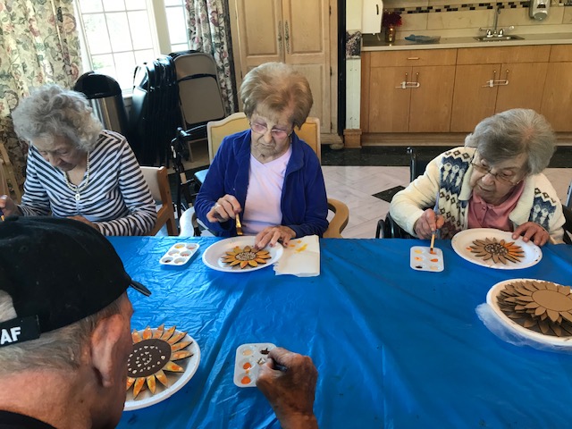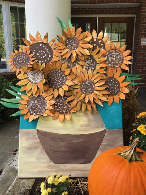 Aaron Manor Residents collaborated to create their very own rendition of Van Gogh’s famous Sunflowers painting.