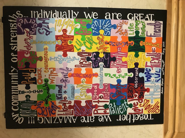 Aaron Manor residents display their creative strength and unity with “Our Community of Strengths” project. That same week, Aaron Manor hosted a Meditative Mandalas event in which residents crafted their own personalized design. Mandalas traditionally come from Hinduism and Buddhism, and represent personal balance in relation to the universe.