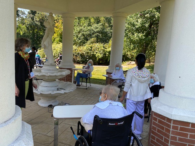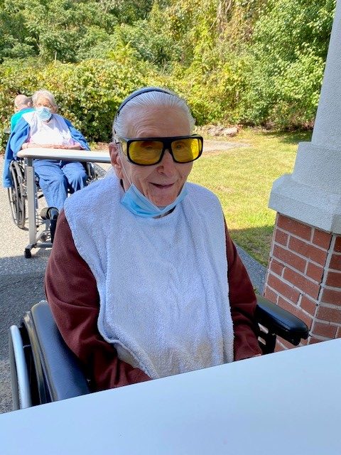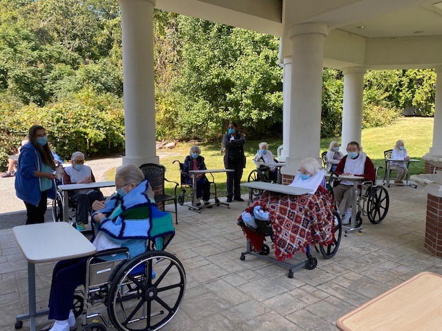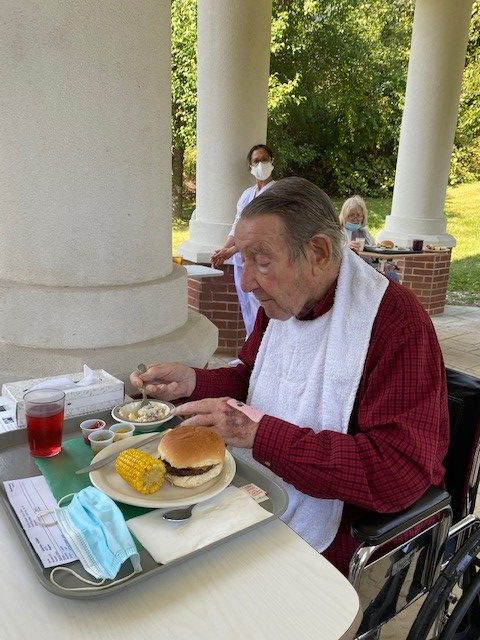 Our residents enjoying an outside picnic lunch on this beautiful day.