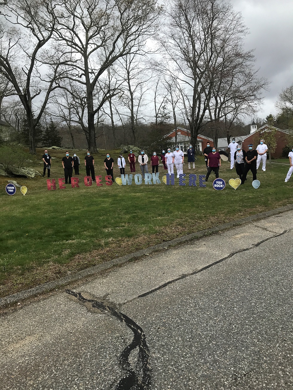 Aaron Manor staff celebrate another successful Covid recovery graduation!  In addition, 250 face masks were donated to us by FORD.  They were all carefully pieced together thanks to Laurie Gilbert. Thank you again to everyone for making these hard times that much easier.